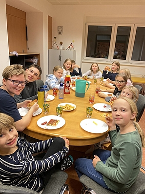 Nach einem entspannten Nachmittag im Hummelhofbad in Linz, wo die Kinder beim Kinderwellness entspannen und Spaß haben konnten, ging es zurück in die Schule. Dort wurde gemeinsam Pizza gebacken und anschließend bereiteten alle ihre Schlafplätze vor. Der Tag endete mit einer gemütlichen Übernachtung in der Schule – ein unvergessliches Erlebnis!